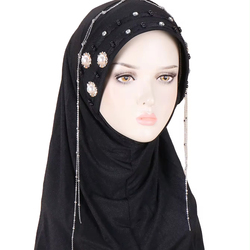 צעיף יוקרתי ויוקרתי צעיף רגיל מוצק חיג 'אב מתגלח עם שרשרת פנינים פנינים rhinestone לקיץ