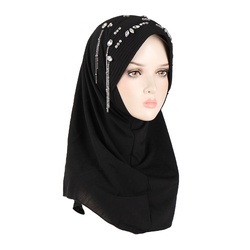 حجاب عادي شاش عرقي للنساء المسلمات وشاح مربع شال توربان زهرة لؤلؤ حجر الراين بالجملة